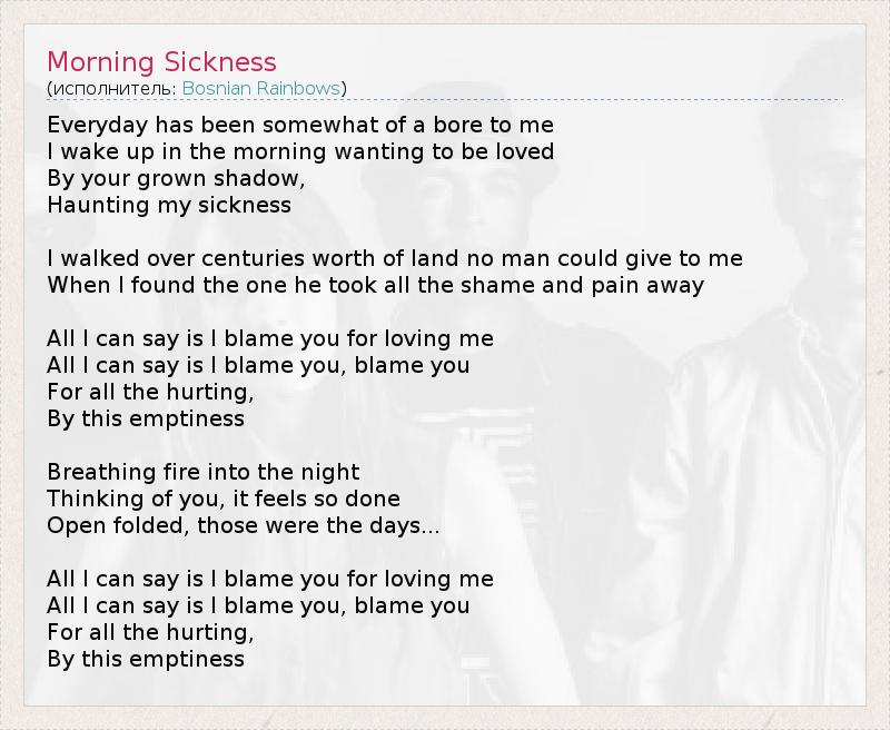 А как ты думаешь, о чем песня "Morning Sickness" ?