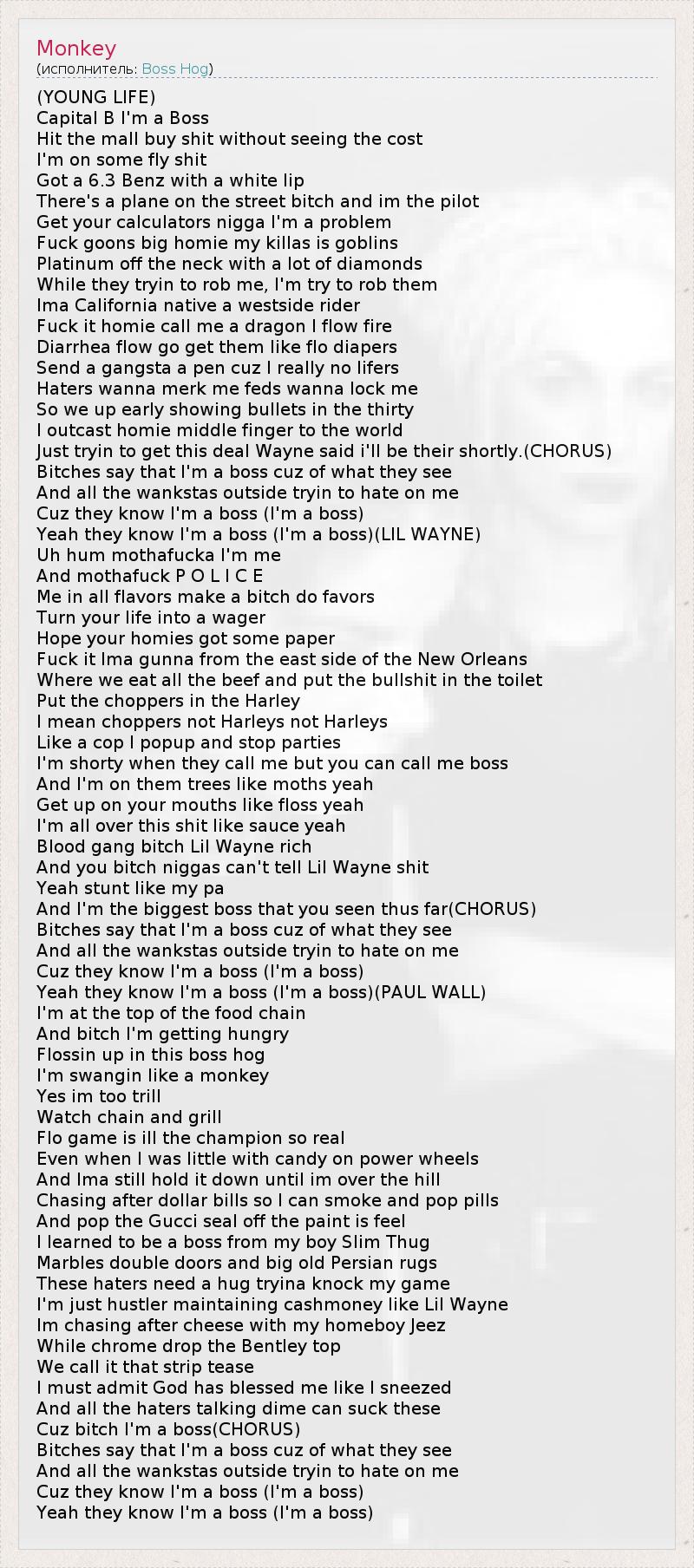 Yeah they know I'm a boss (I'm a boss)(LIL WAYNE)