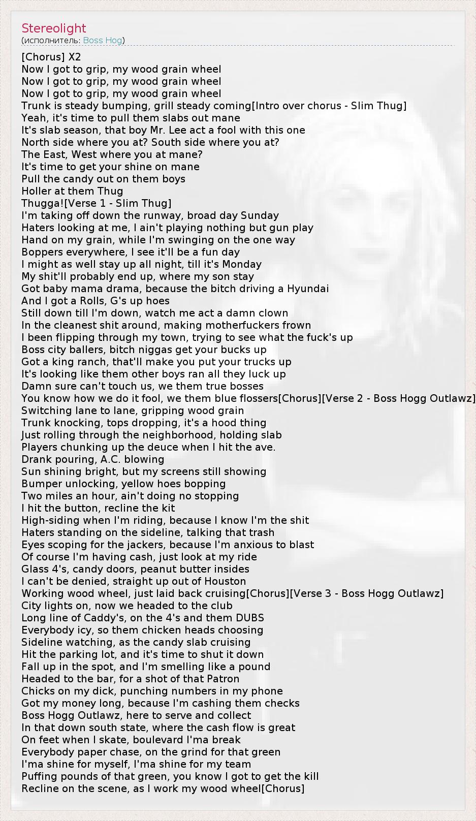 Working wood wheel, just laid back cruising[Chorus][Verse 3 - Boss Hogg Outlawz]