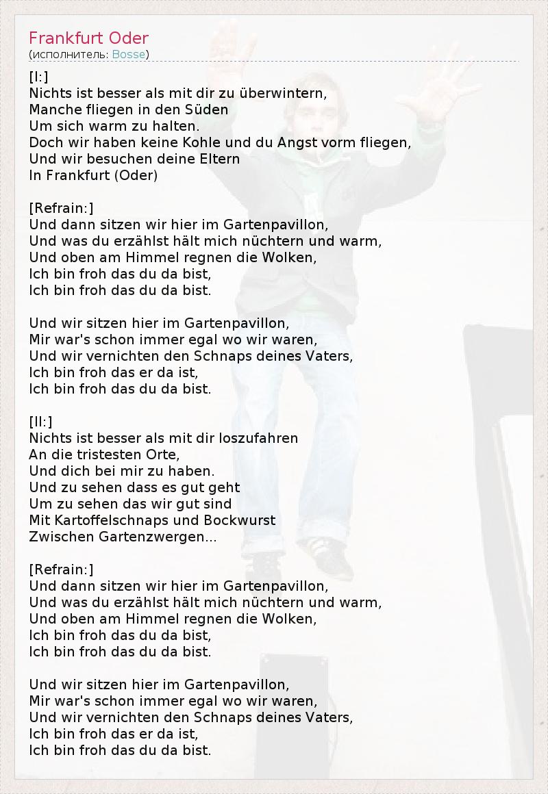 А как ты думаешь, о чем песня "Frankfurt Oder" ?