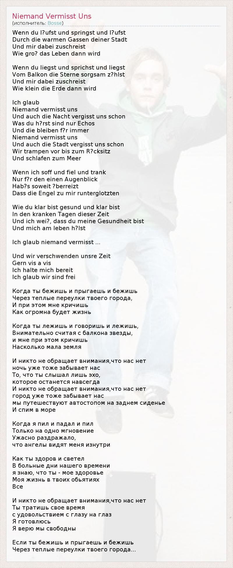 ГлавнаяИсполнителиBosseNiemand Vermisst Uns