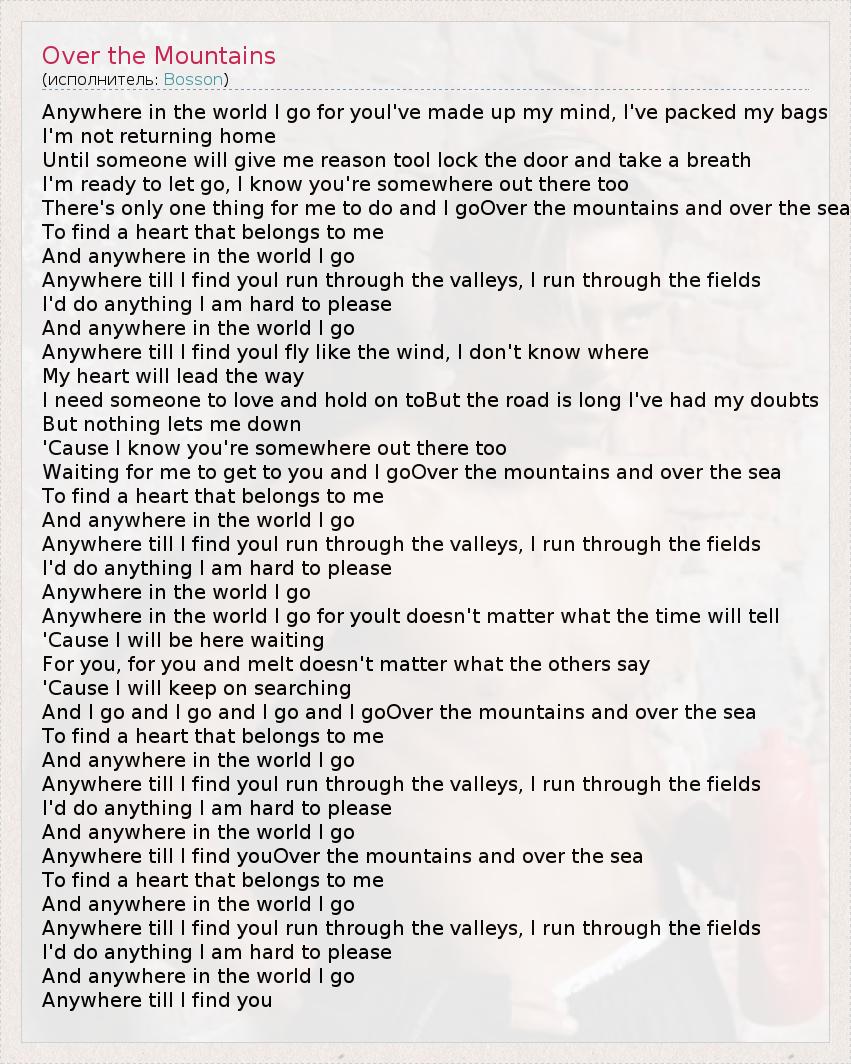 А как ты думаешь, о чем песня "Over the Mountains" ?