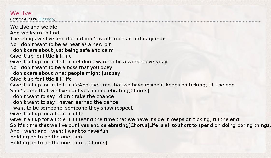 А как ты думаешь, о чем песня "We live" ?