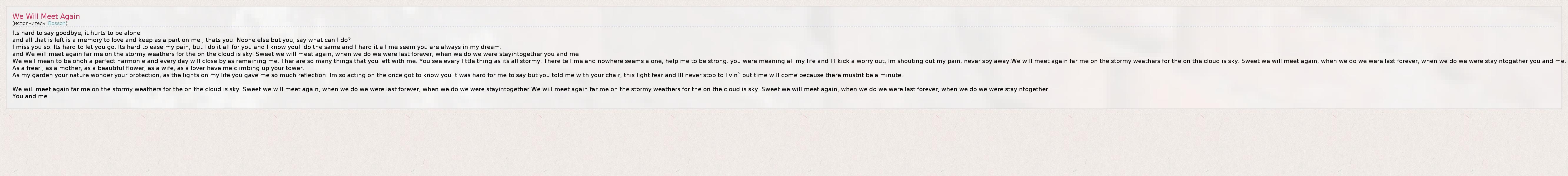 А как ты думаешь, о чем песня "We Will Meet Again" ?