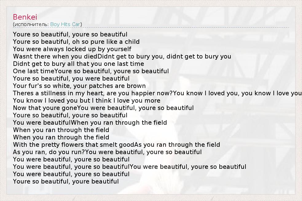 You were beautiful, youre so beautifulYou were beautiful, youre so beautiful