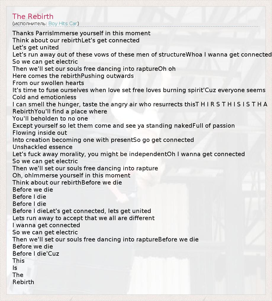 А как ты думаешь, о чем песня "The Rebirth" ?