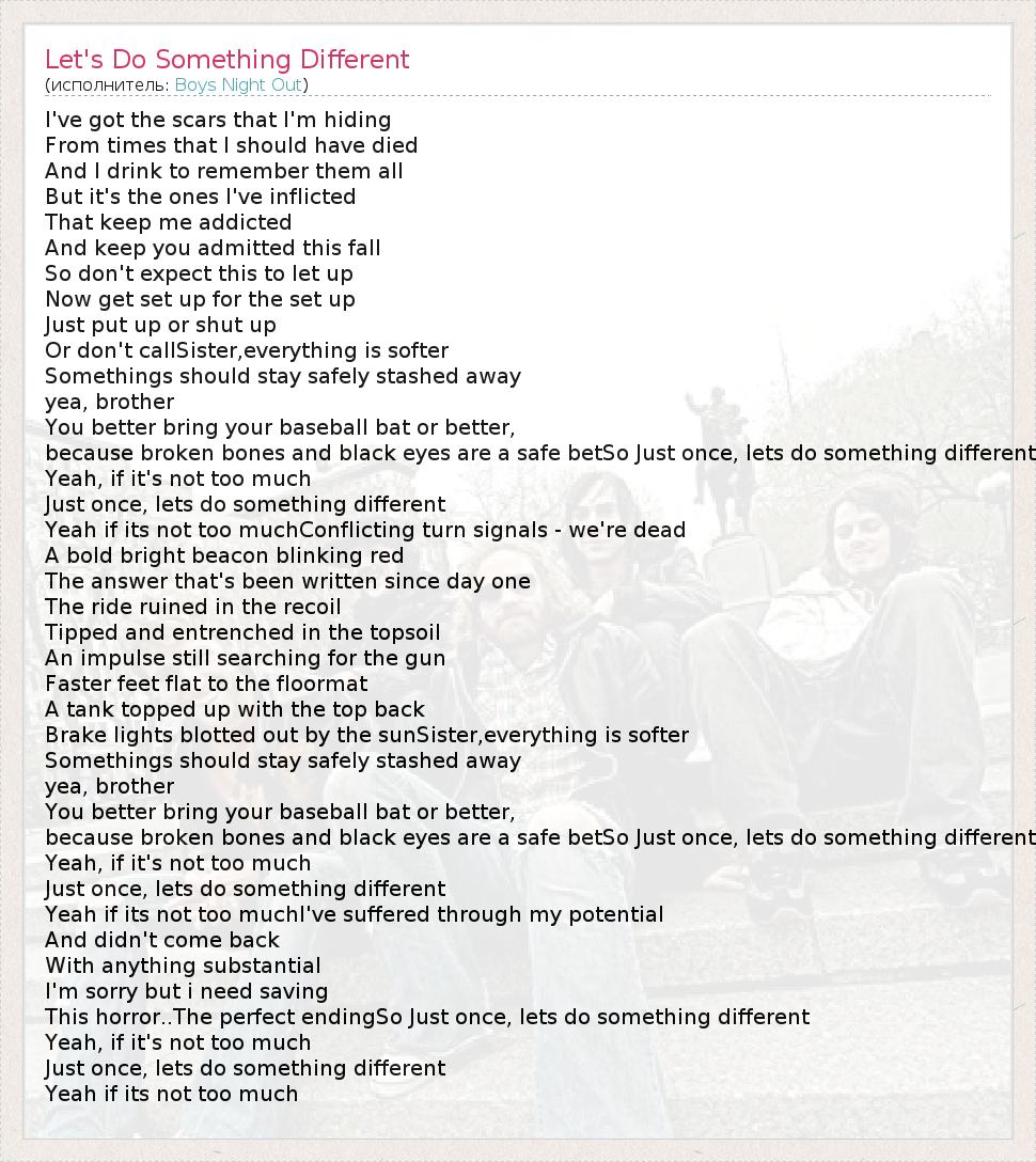 А как ты думаешь, о чем песня "Let's Do Something Different" ?