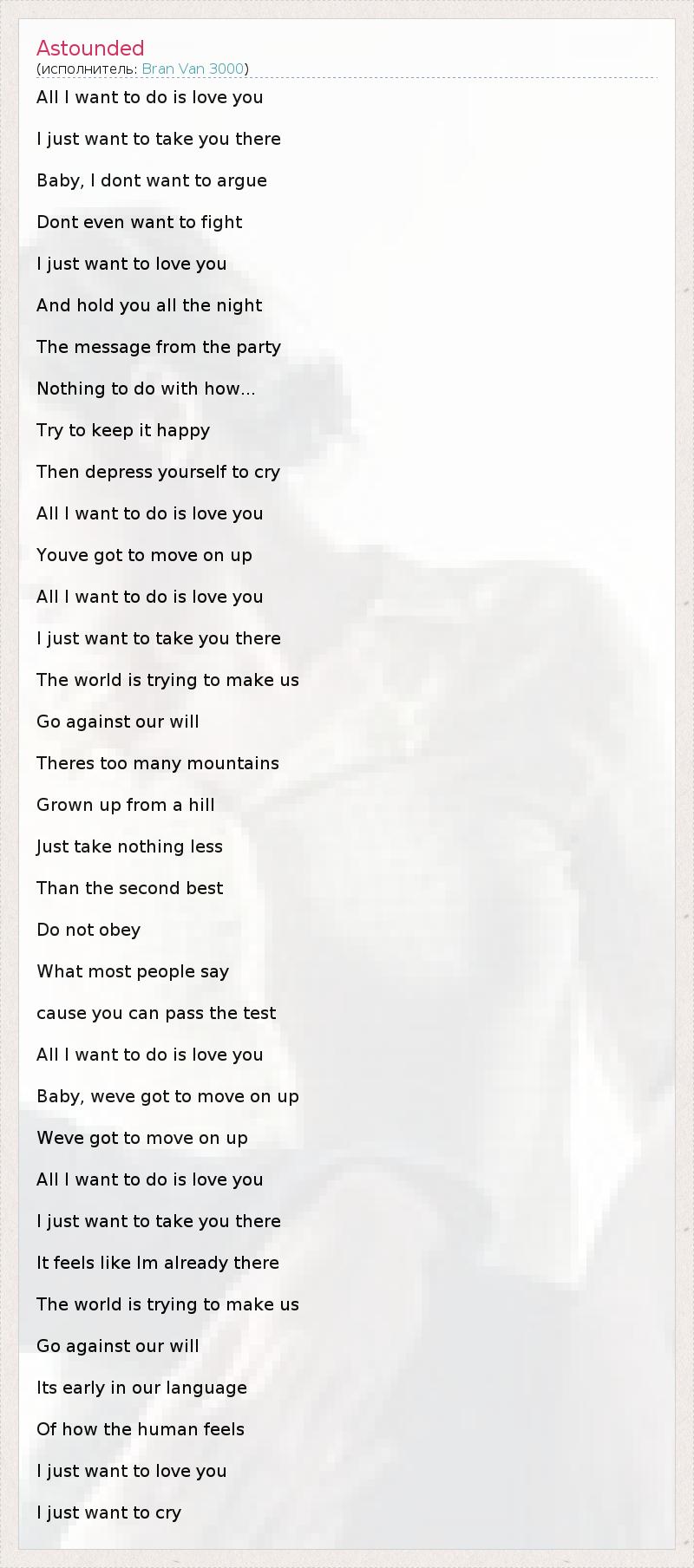 Это интересно:Bran Van 3000 (also known as Bran Van and BV3) is an electronica collective from Montreal, Canada. Founded by DJ James Di Salvio and E.P. Bergen, they collaborated on a number of songs with Stéphane Moraille, Sara Johnston, Steve "Liquid" Hawley, Jayne Hill, Québécois rock star Jean Leloup and other musicians.HistoryJames Di Salvio and E.P. Bergen got together in Manhattan and coined Bran Van 3000 in 1994. Di Salvio was a video director and asked E.P. to come teach him how to produce tracks with a sampler and turntables. Together they went and bought studio equipment in Times Square. E.P. returned to Montreal and immediately co-wrote/produced a single with Jean Leloup called:... продолжение