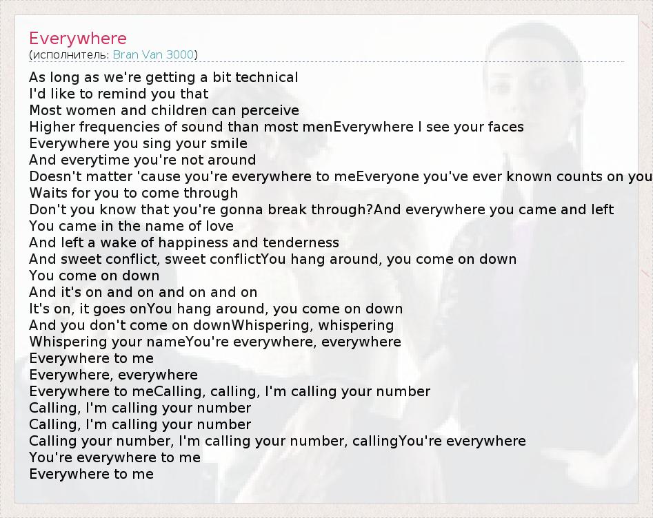 Doesn't matter 'cause you're everywhere to meEveryone you've ever known counts on you