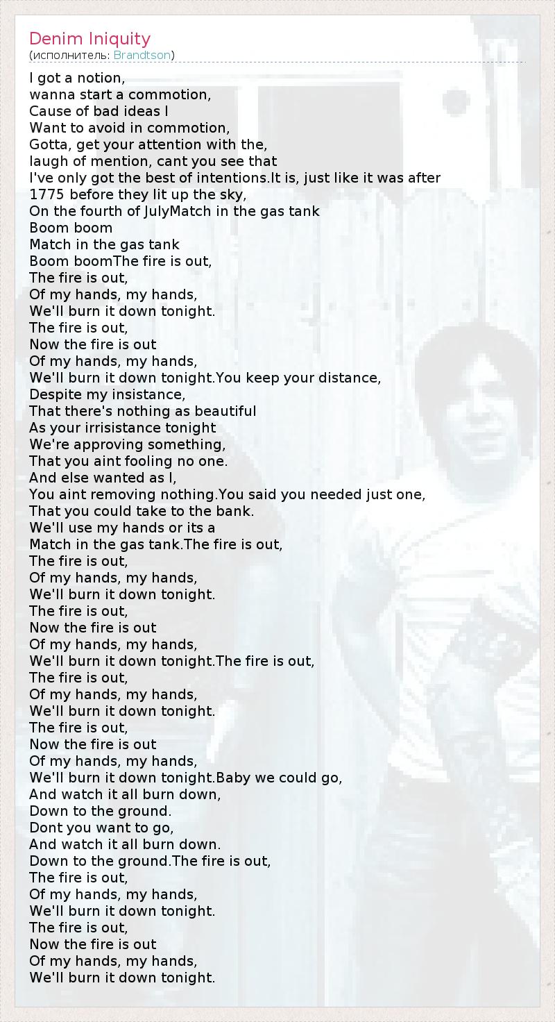 А как ты думаешь, о чем песня "Denim Iniquity" ?