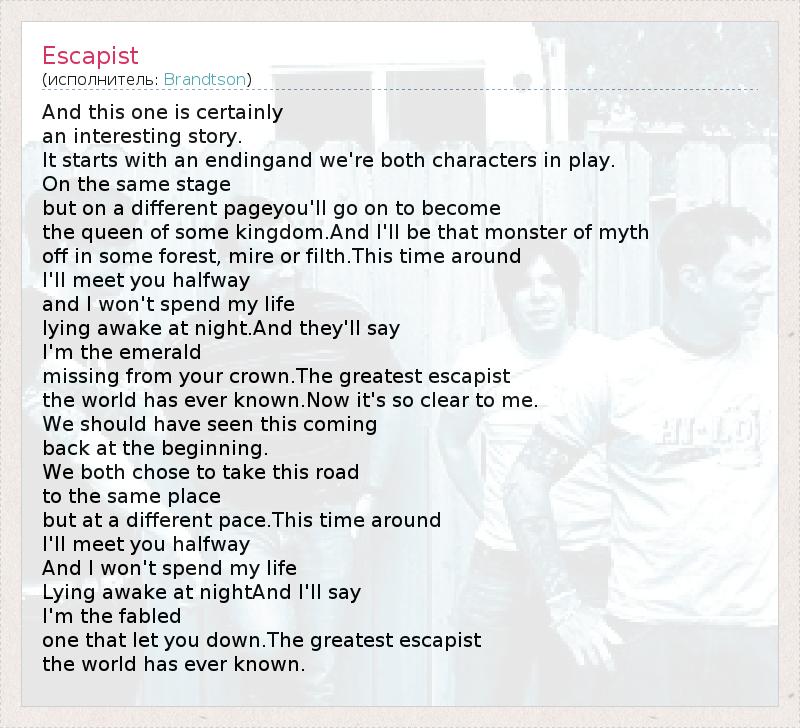 А как ты думаешь, о чем песня "Escapist" ?