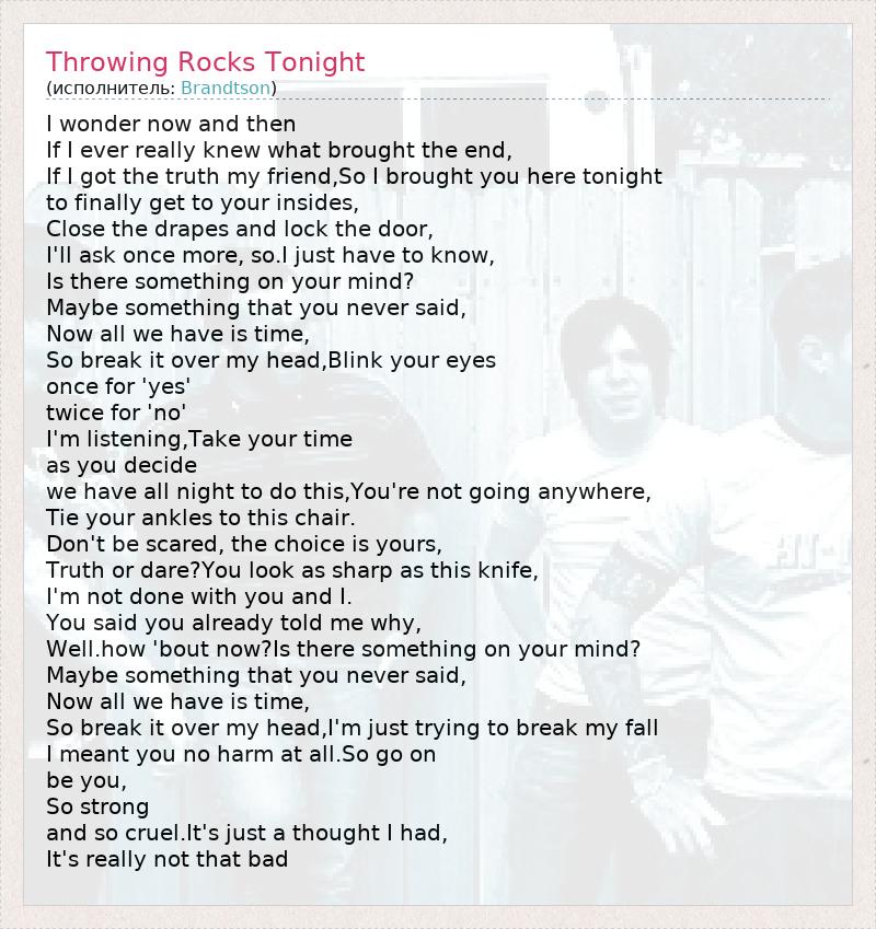 ГлавнаяИсполнителиBrandtsonThrowing Rocks Tonight