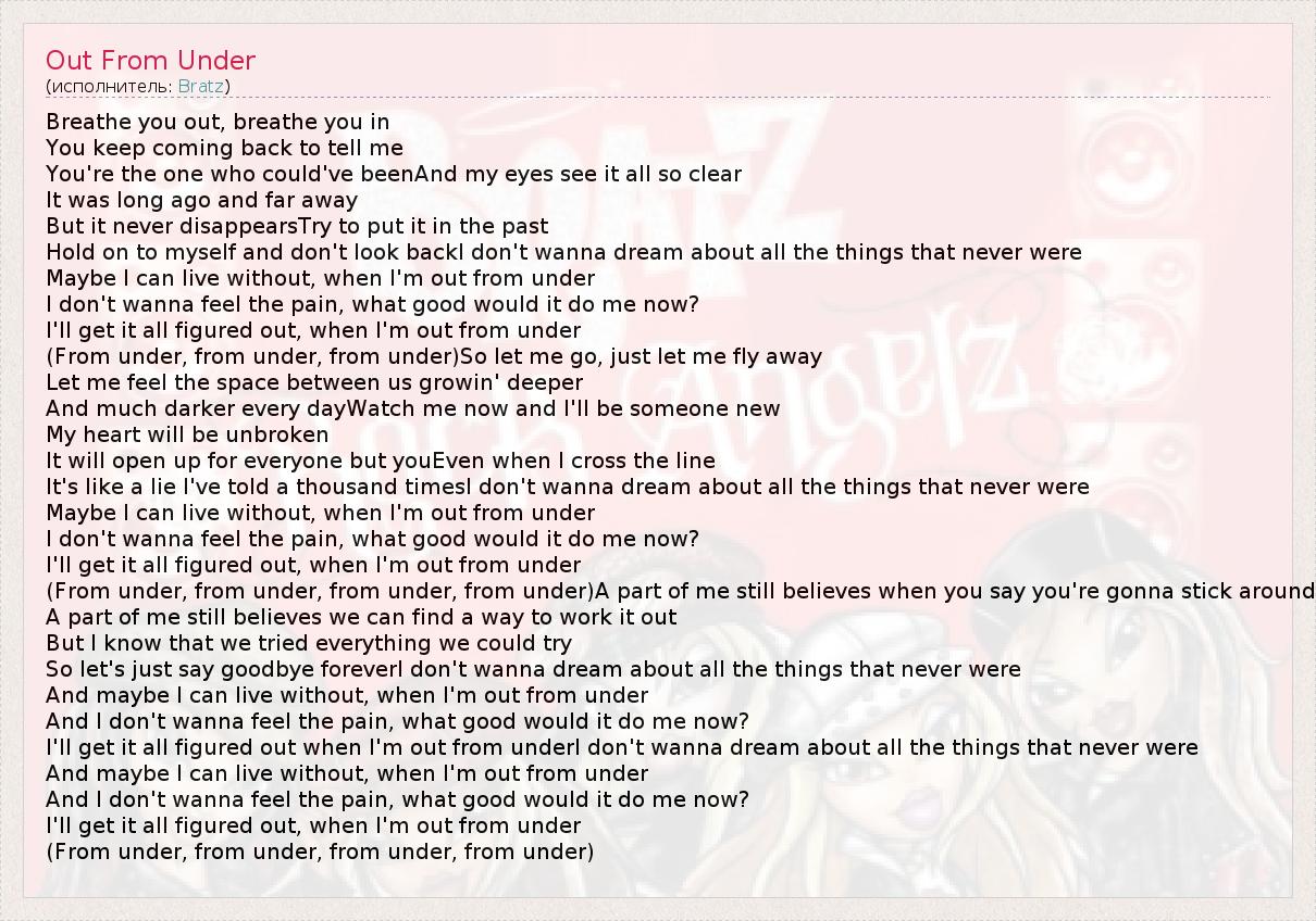 I'll get it all figured out when I'm out from underI don't wanna dream about all the things that never were