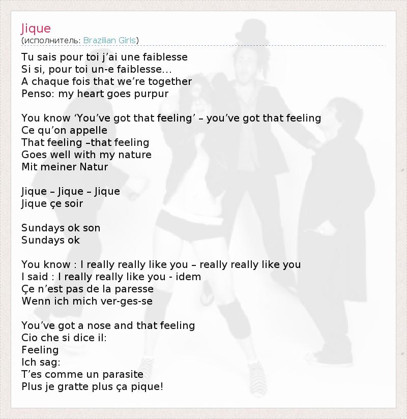 Это интересно:Вам когда-нибудь доводилось испытывать странное ощущение, будто вы находитесь в нескольких точках мира одновременно? Тринидад или Токио, Манхэттен или Милан, Бразилия или Багамы? Если нет, то Brazilian Girls подарят вам это чувство. Как говорит очаровательная вокалистка (единственная девушка в группе) Сабина, встреча с тремя другими участниками группы была похожа на "любовь с первого... продолжение