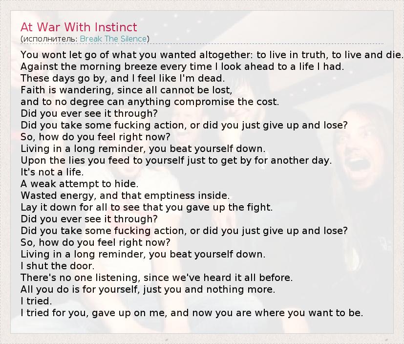 А как ты думаешь, о чем песня "At War With Instinct" ?