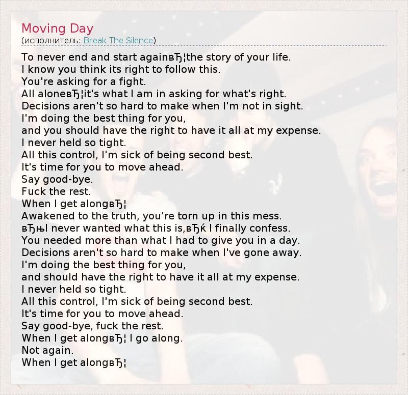 А как ты думаешь, о чем песня "Moving Day" ?