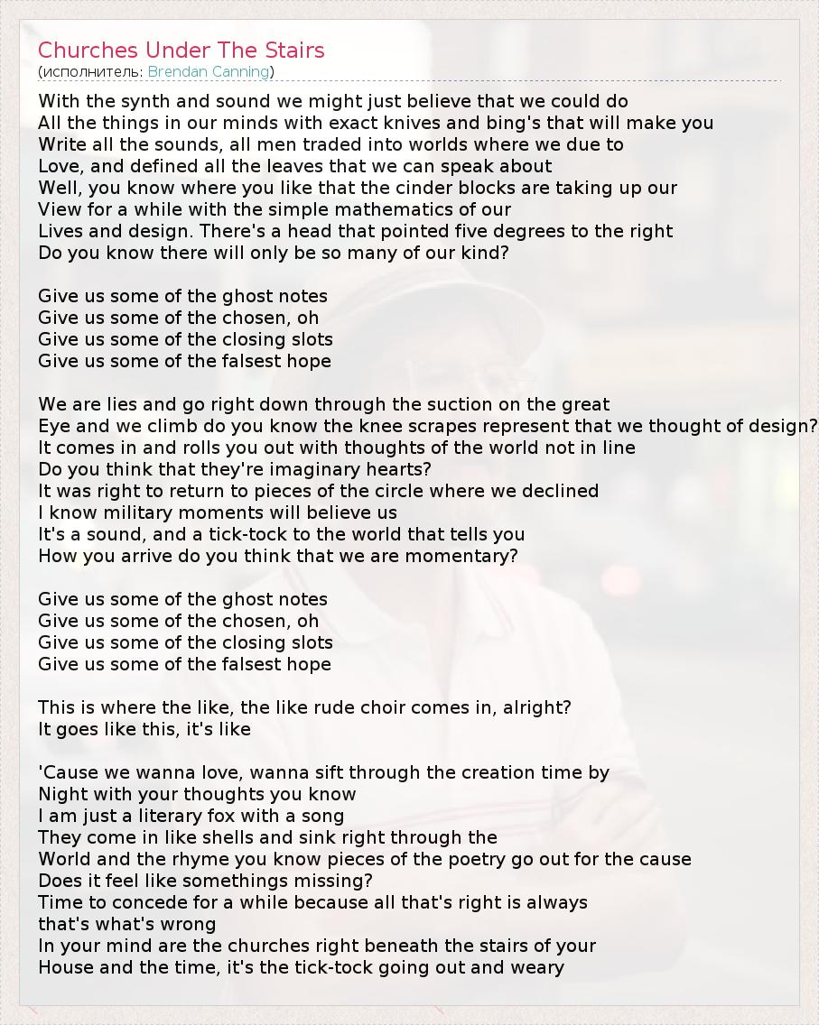 А как ты думаешь, о чем песня "Churches Under The Stairs" ?