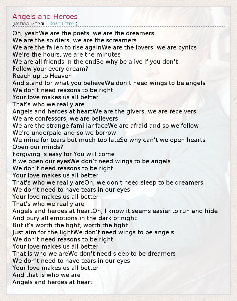 А как ты думаешь, о чем песня "Angels and Heroes" ?