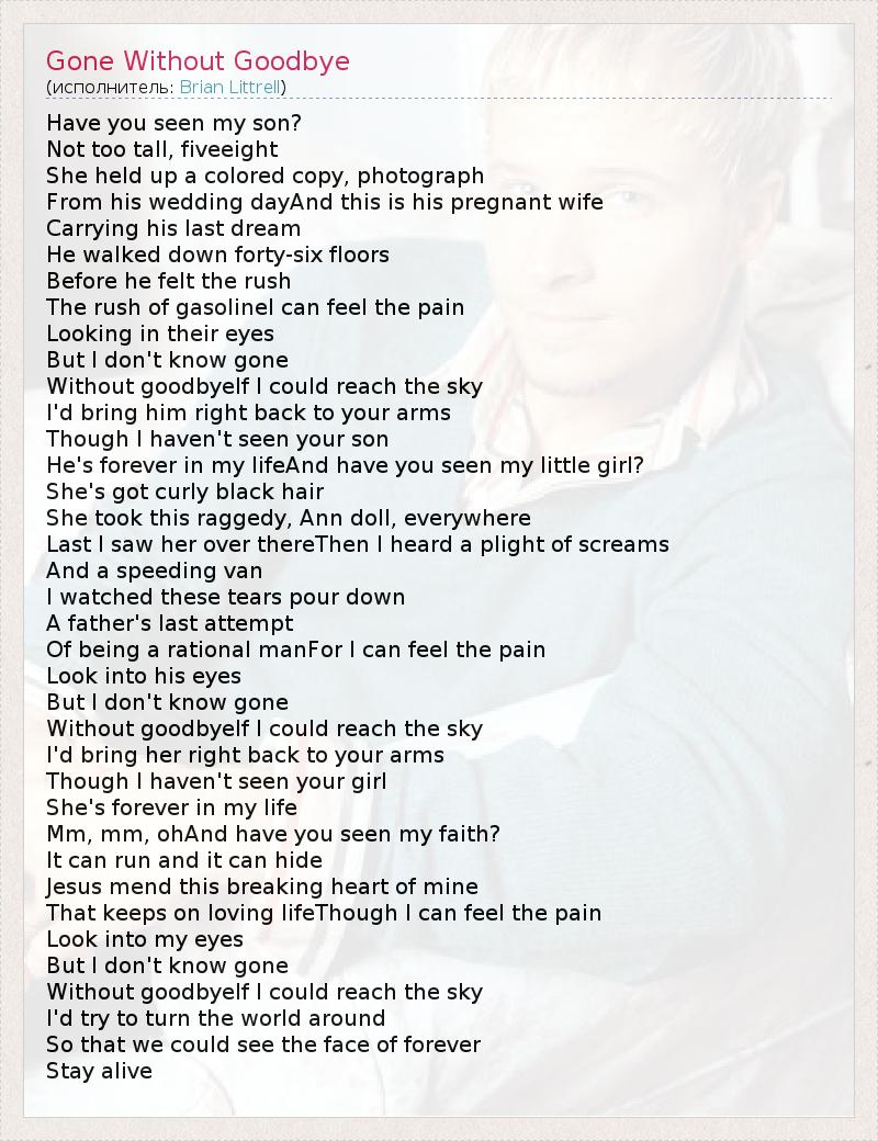 А как ты думаешь, о чем песня "Gone Without Goodbye" ?