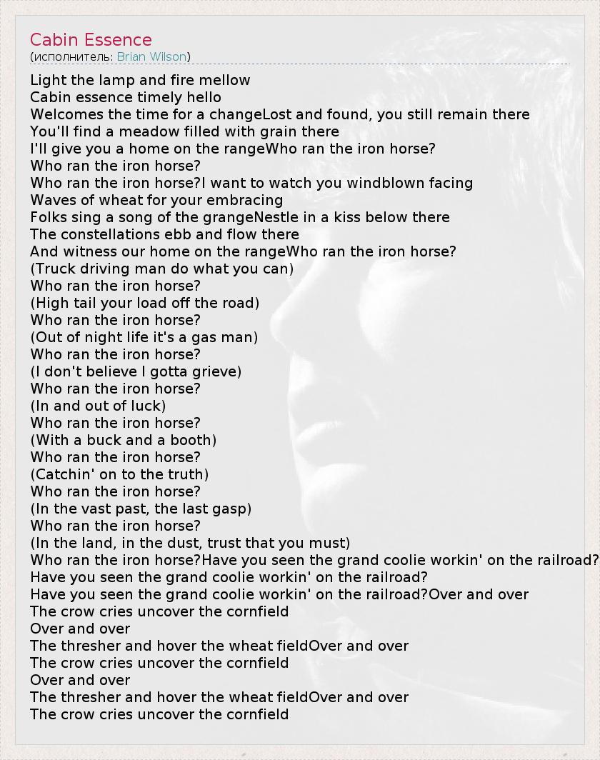 А как ты думаешь, о чем песня "Cabin Essence" ?
