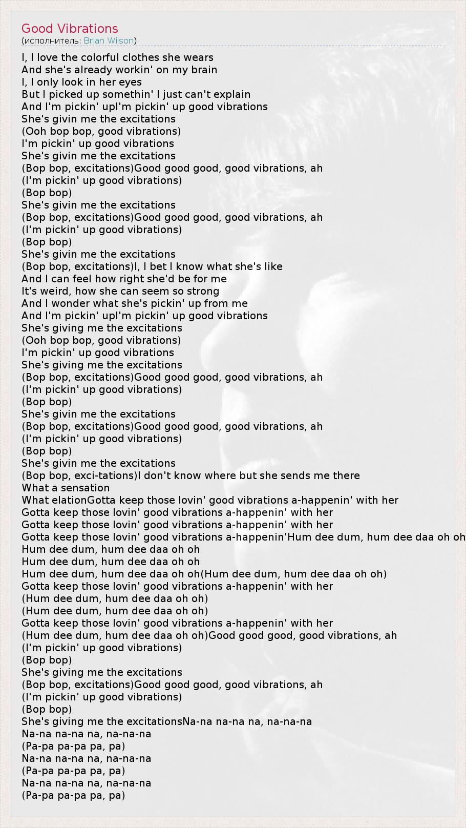 А как ты думаешь, о чем песня "Good Vibrations" ?
