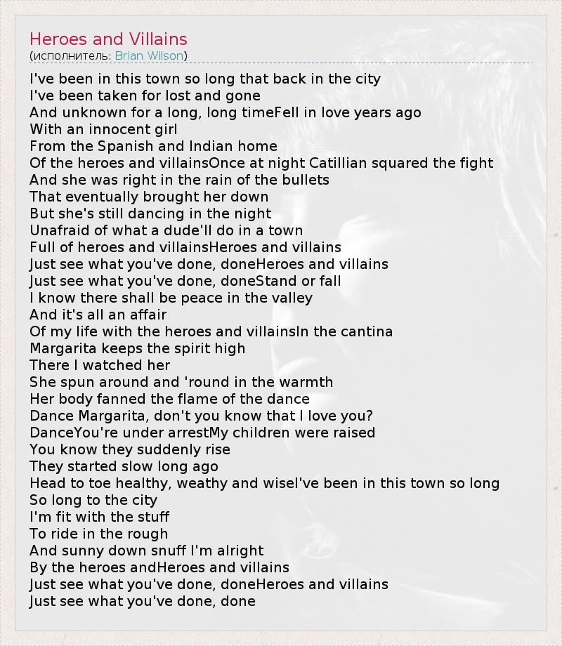 А как ты думаешь, о чем песня "Heroes and Villains" ?