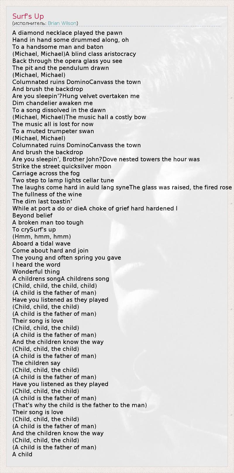 А как ты думаешь, о чем песня "Surf's Up" ?