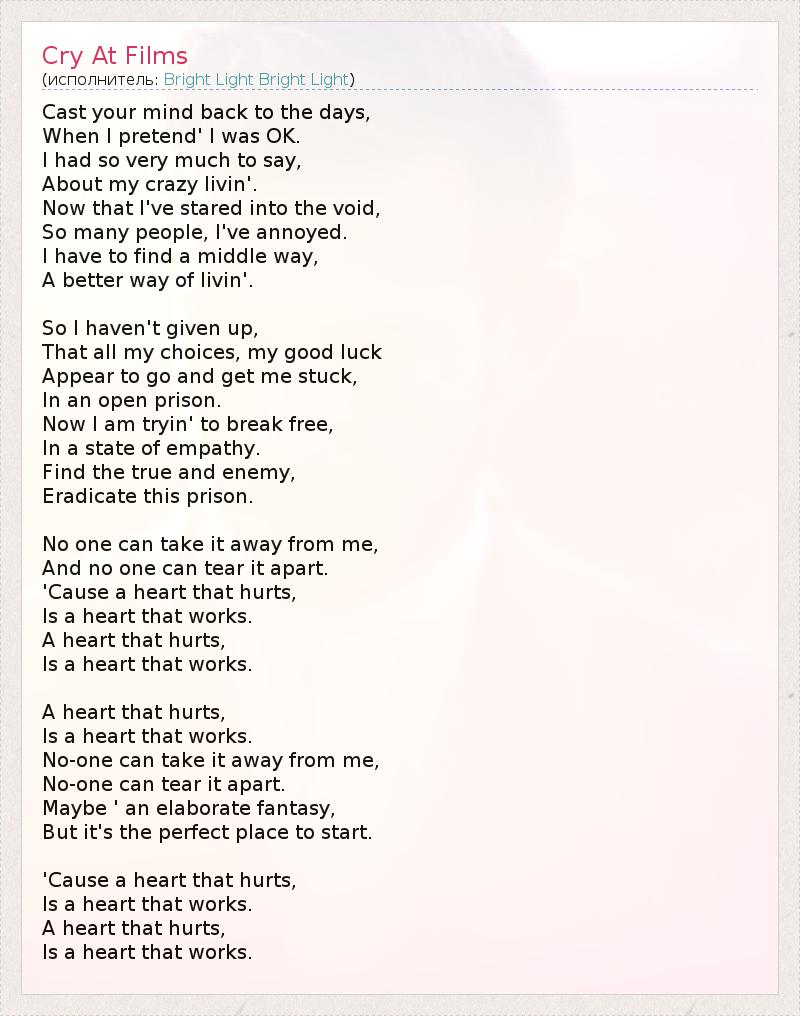 А как ты думаешь, о чем песня "Cry At Films" ?