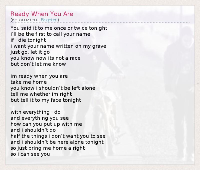 А как ты думаешь, о чем песня "Ready When You Are" ?