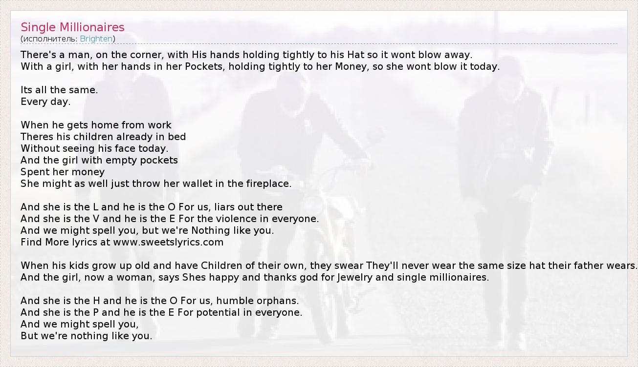 А как ты думаешь, о чем песня "Single Millionaires" ?