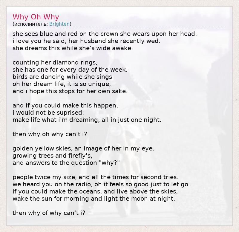 А как ты думаешь, о чем песня "Why Oh Why" ?
