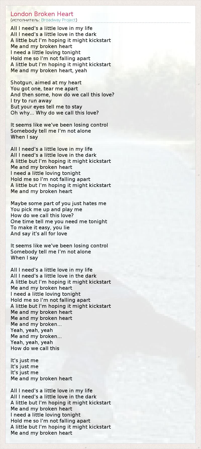 А как ты думаешь, о чем песня "London Broken Heart" ?