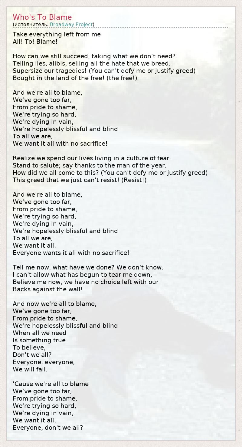 А как ты думаешь, о чем песня "Who's To Blame" ?