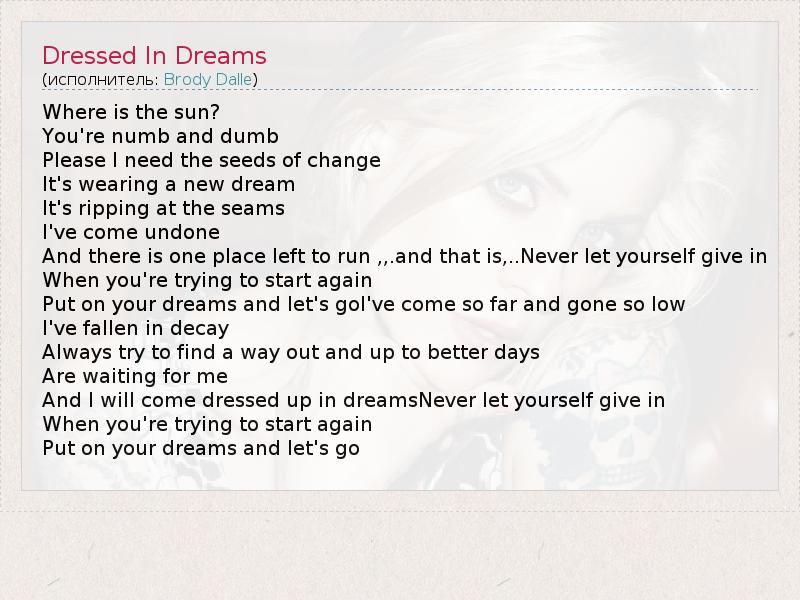 А как ты думаешь, о чем песня "Dressed In Dreams" ?