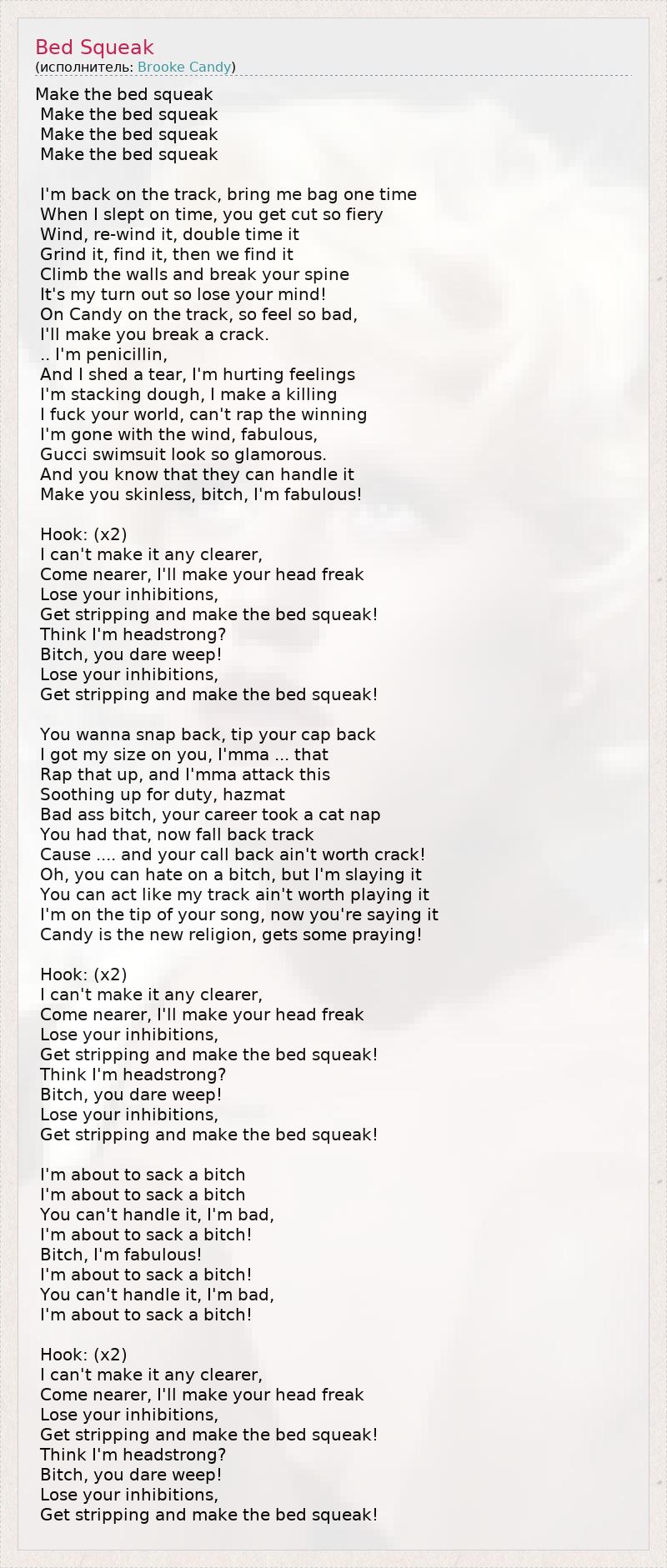 А как ты думаешь, о чем песня "Bed Squeak" ?