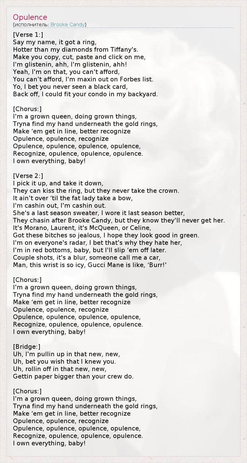 Это интересно:Los Angeles, California, USA (2012 – present)Brooke Dyan Candy (born July 20, 1989) is an American rapper, and Internet personality from Los Angeles, California, USA. She began her musical career in 2012 by co-starring in the music video for Grimes’ 2012 single ‘Genesis’ and also featuring on ‘Cloud Aura’ with Charli XCX the same year.She released a music video for her song ‘Das Me’ in October 2012. Her second video, ‘Everybody Does’, was released on January 3, 2013 and third video for ‘I Wanna Fuck Right Now’ was released on February 11, 2013. After releasing a couple more singles, Brooke released her debut EP, Opulence EP on 6th May, 2014 which included her hit... продолжение
