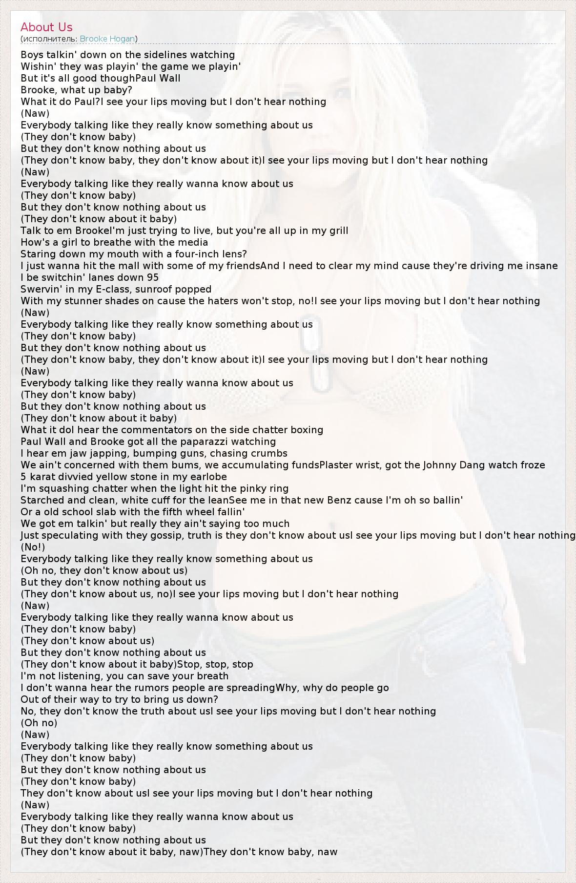 А как ты думаешь, о чем песня "About Us" ?