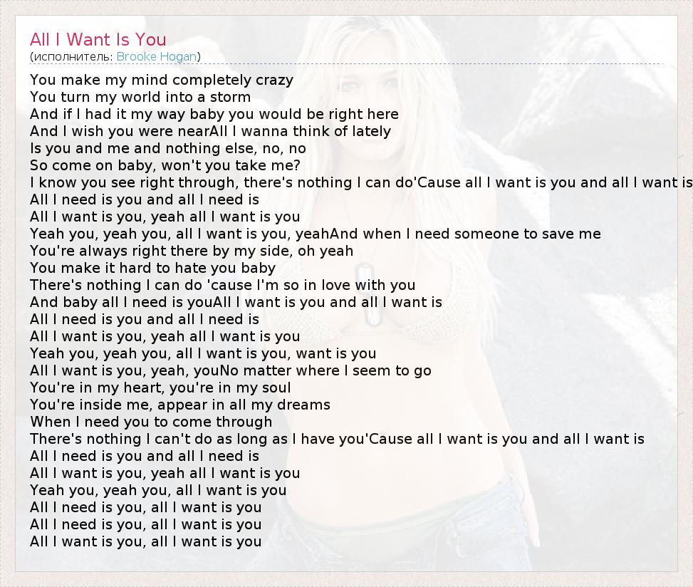 А как ты думаешь, о чем песня "All I Want Is You" ?