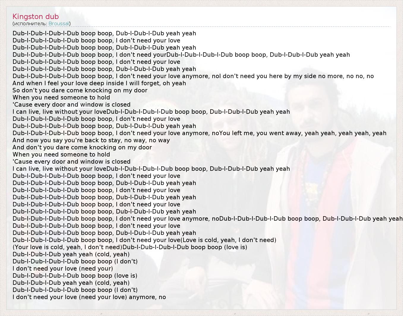 Dub-I-Dub-I-Dub-I-Dub boop boop, I don't need your love anymore, noI don't need you here by my side no more, no no, no