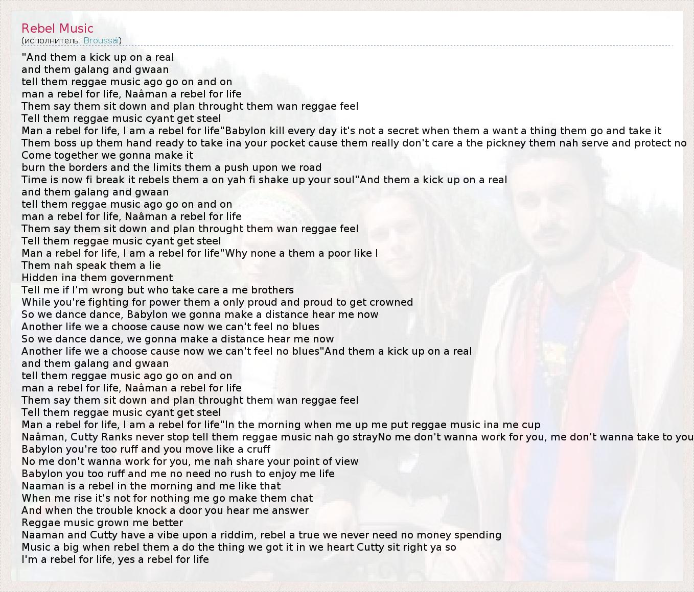 А как ты думаешь, о чем песня "Rebel Music" ?
