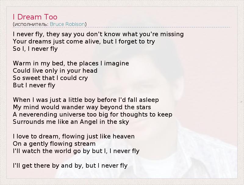 А как ты думаешь, о чем песня "I Dream Too" ?