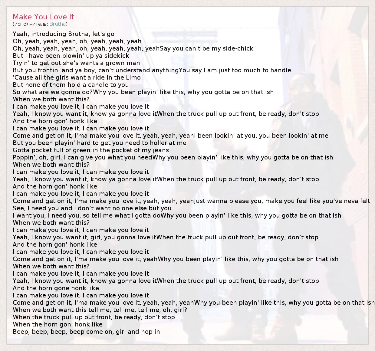 А как ты думаешь, о чем песня "Make You Love It" ?