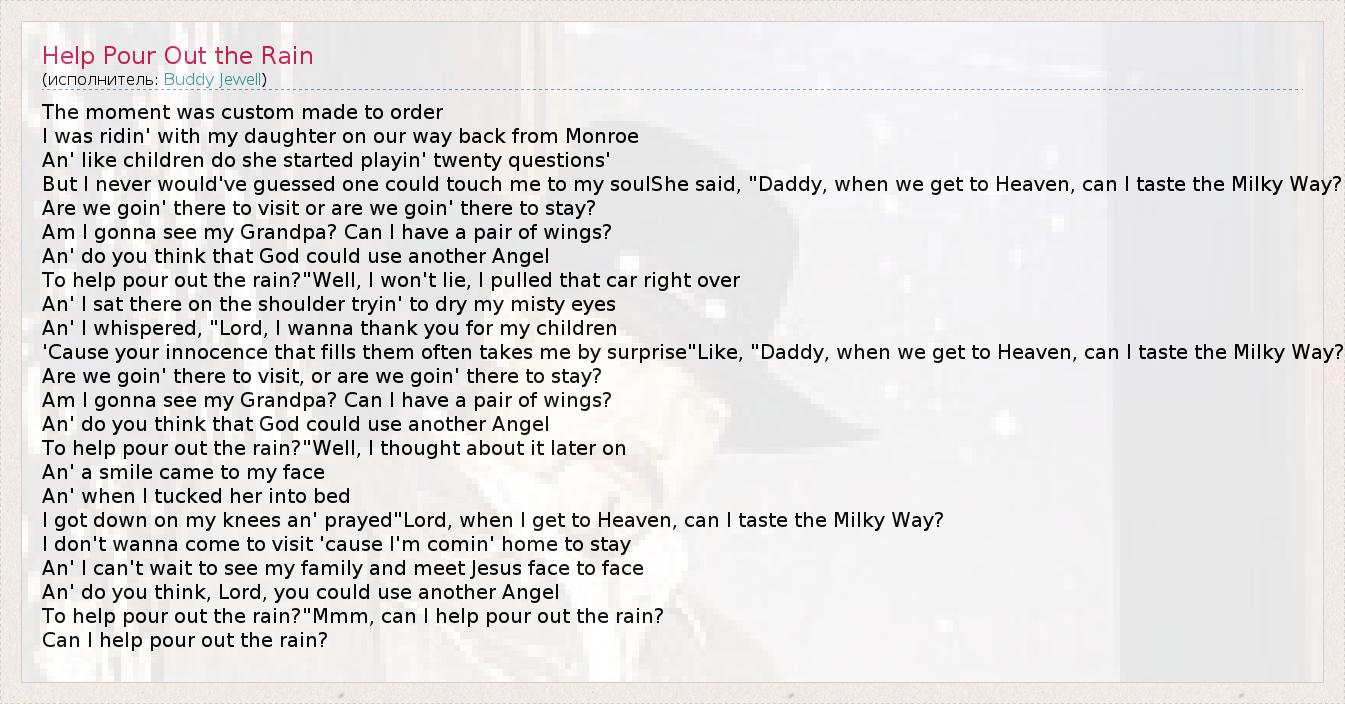 А как ты думаешь, о чем песня "Help Pour Out the Rain" ?