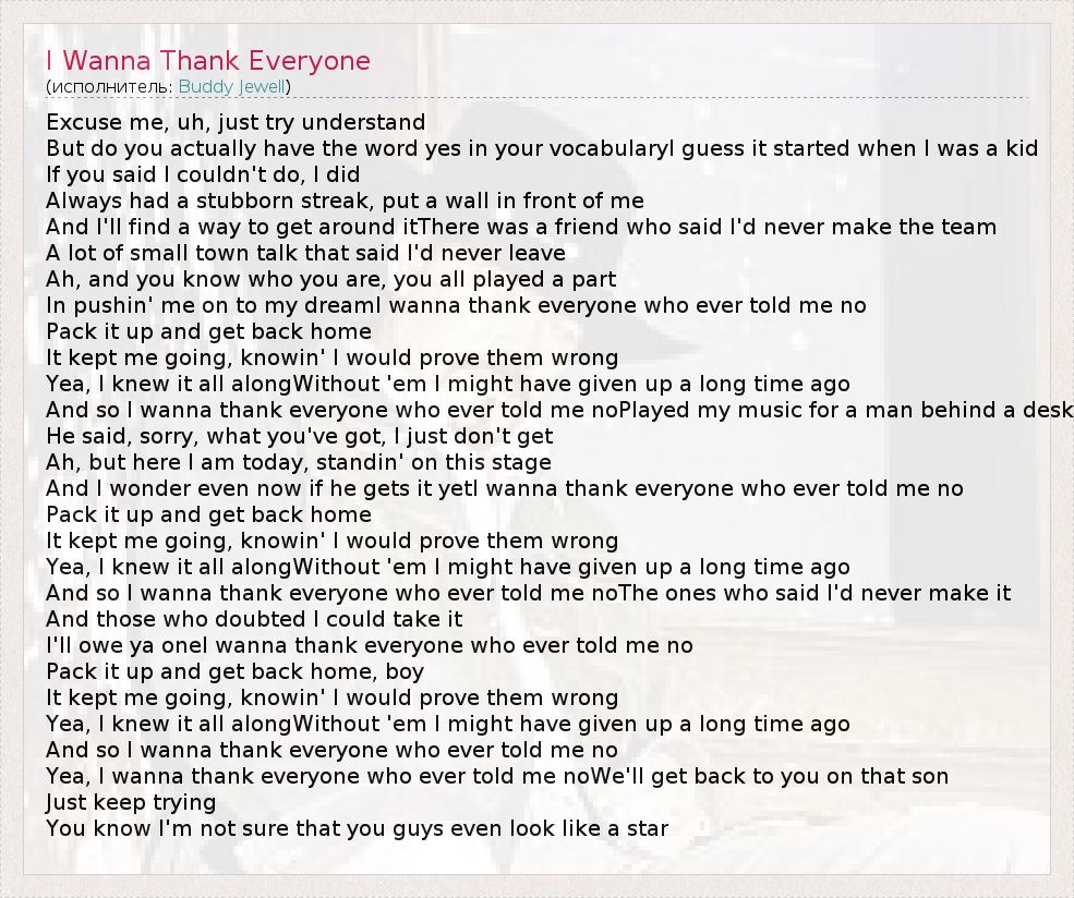 А как ты думаешь, о чем песня "I Wanna Thank Everyone" ?