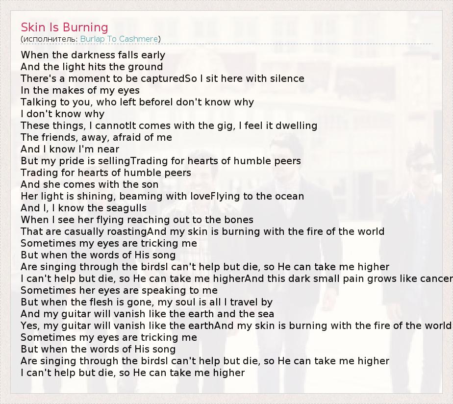 А как ты думаешь, о чем песня "Skin Is Burning" ?