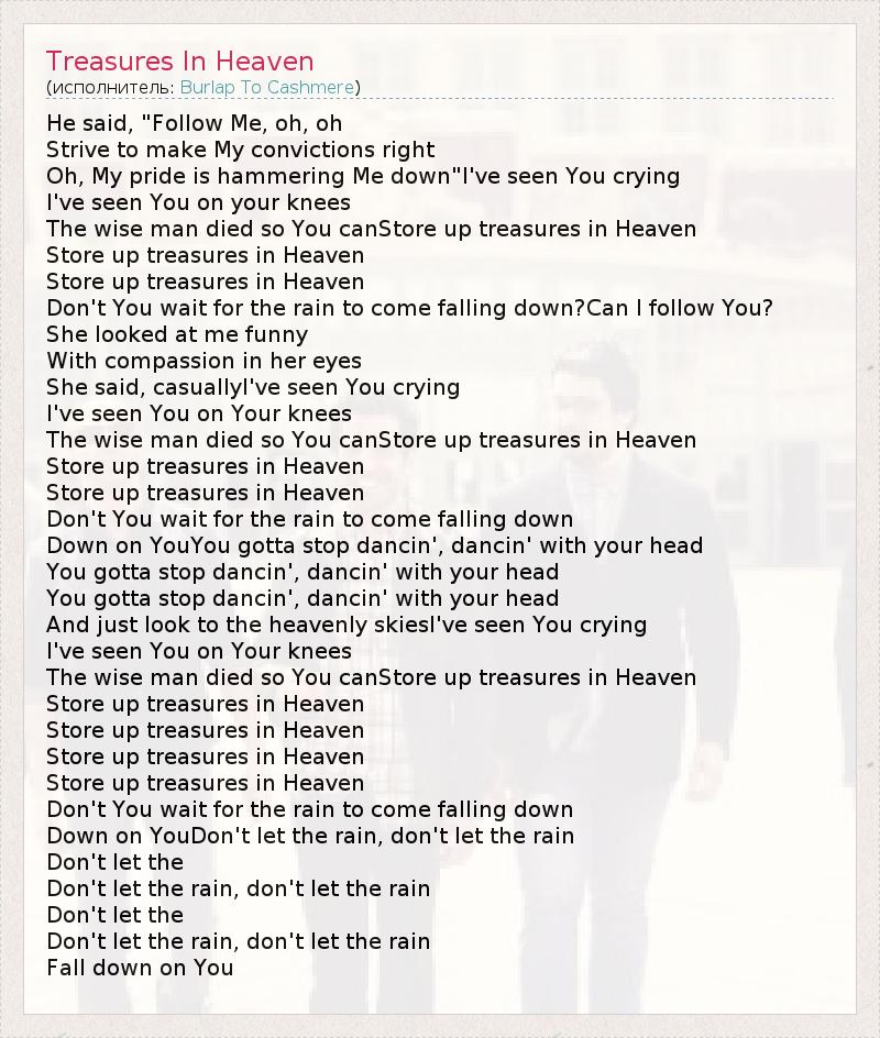 А как ты думаешь, о чем песня "Treasures In Heaven" ?