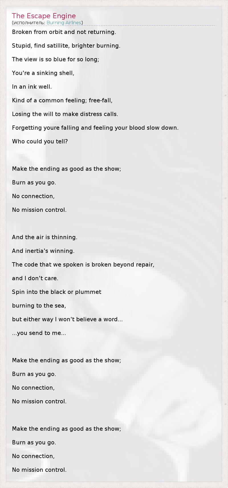 А как ты думаешь, о чем песня "The Escape Engine" ?