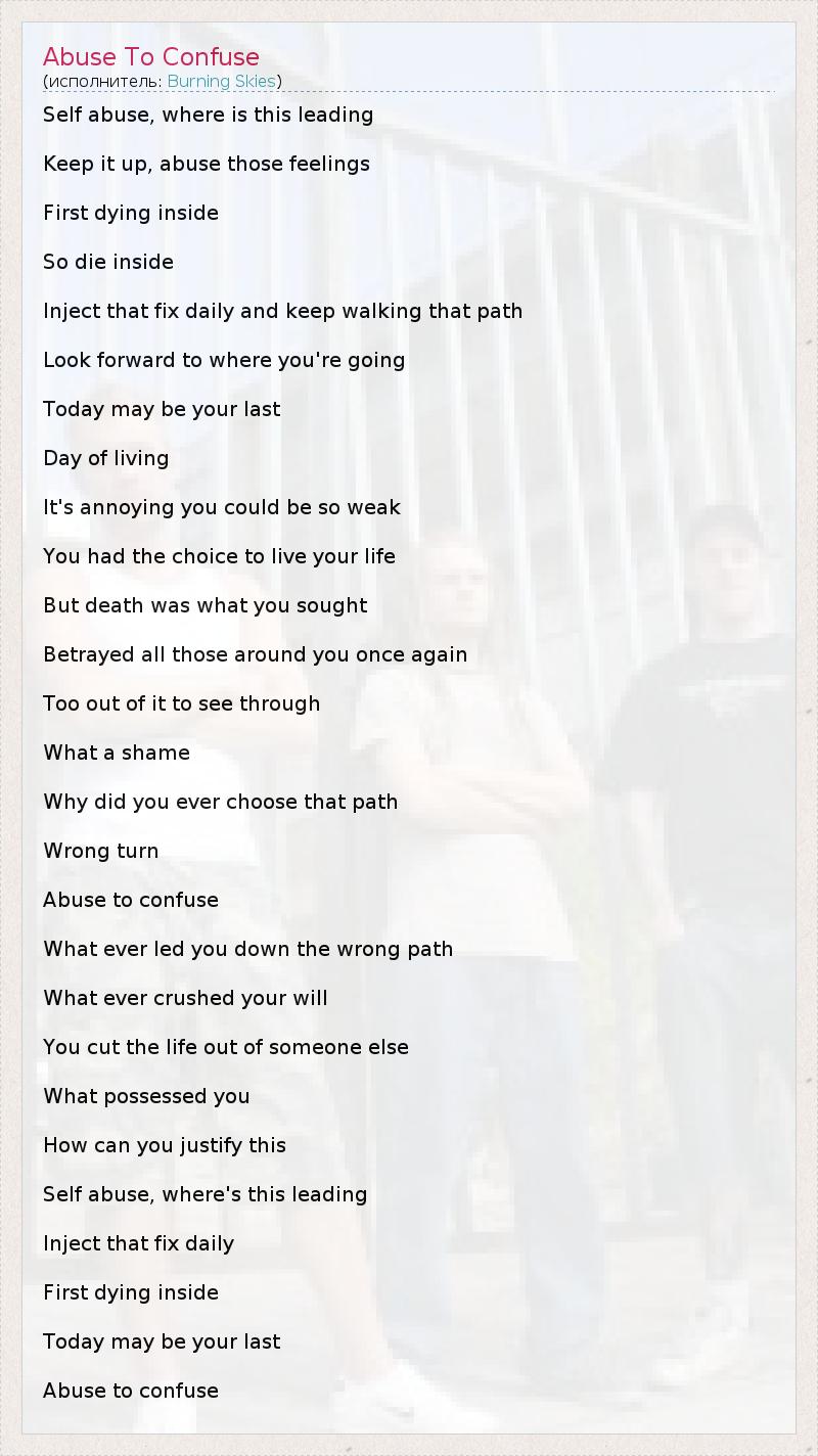 А как ты думаешь, о чем песня "Abuse To Confuse" ?