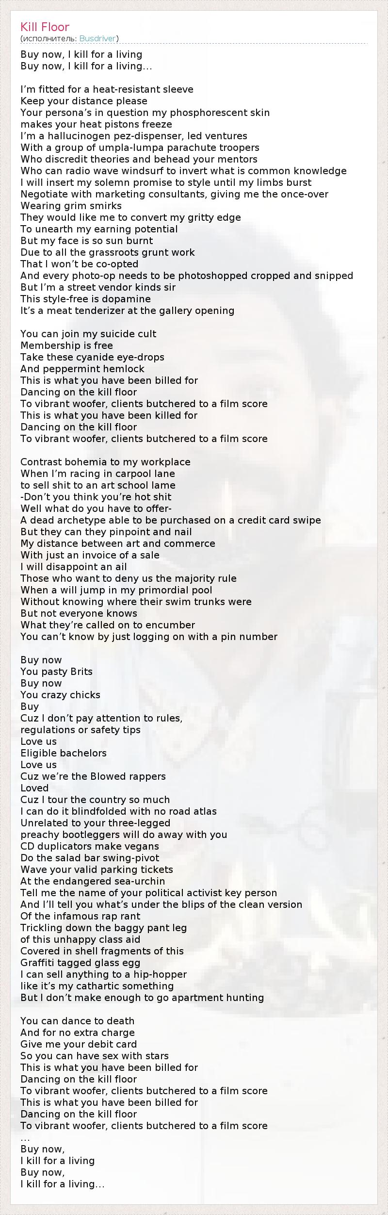 А как ты думаешь, о чем песня "Kill Floor" ?
