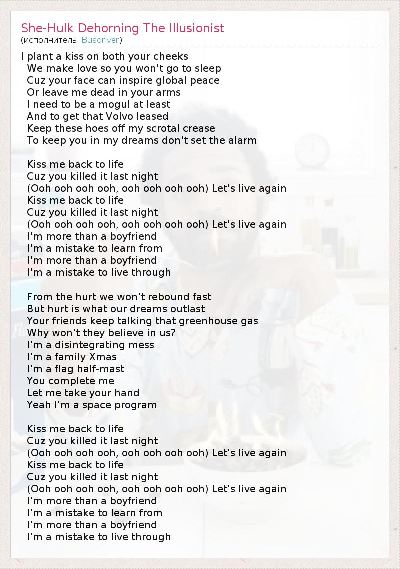 А как ты думаешь, о чем песня "She-Hulk Dehorning The Illusionist" ?